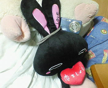 で、ここでゲーセンに行ってLOVEウサギをゲット。ワッカで吊るされているのを落とす奴で約千円でゲット。最初はどうしていいのか分からずクルッと90度に回ってしまったのでちょっと断念して戻ってきたらワッカが普通に戻っていたので再度チャレンジしたらすぐ取れた品物(≧皿≦)